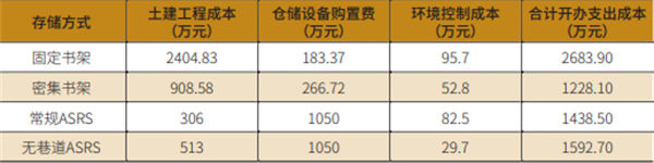 綜上,100萬冊藏量四種不同存儲方式營運支出成本估算結(jié)果,參見表7。