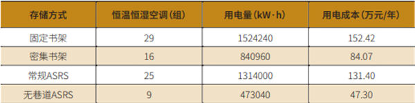 固定書架以及密集書架無需電力驅(qū)動,故沒有電力成本。