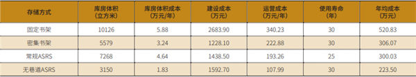 注:后續(xù)若無特殊標(biāo)注,默認(rèn)為常規(guī)AS/RS書庫凈高20m,無巷道AS/RS書庫凈高3.5m