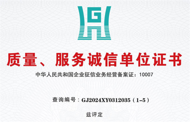 質(zhì)量、服務(wù)誠信單位證書