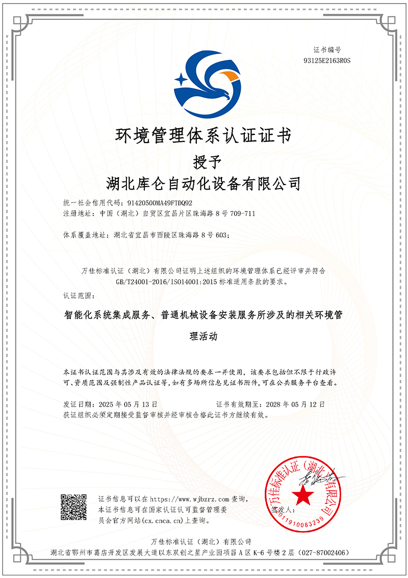 環(huán)境管理體系認證證書
